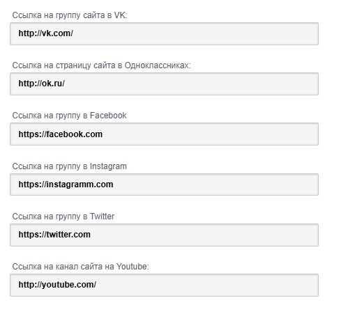 Данное поле выводит значки соц сетей в подвале сайта и в контактах, если поле не заполнить то иконка не выведется