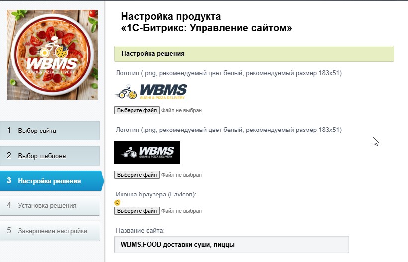 11. Переходим к "Настройки решения", на данной странице мастера, необходимо внести свои данные для настройки: