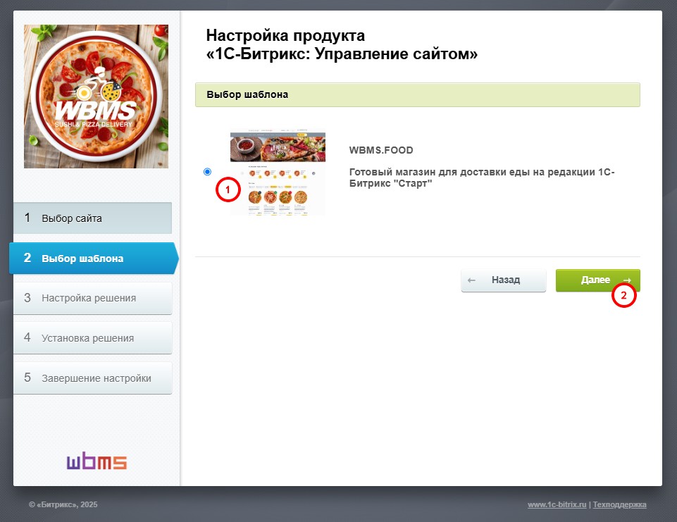 9. На шаге "Выбор шаблона" нет вариантов выбора, по этому просто нажмите кнопку "Далее"